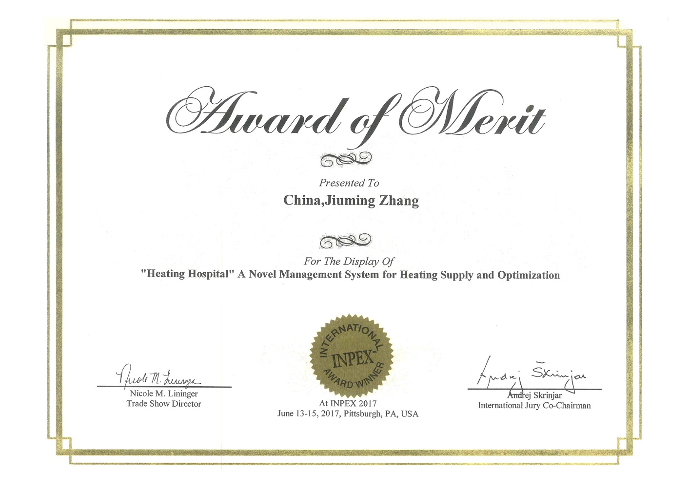 暖氣醫(yī)院優(yōu)秀發(fā)明金獎