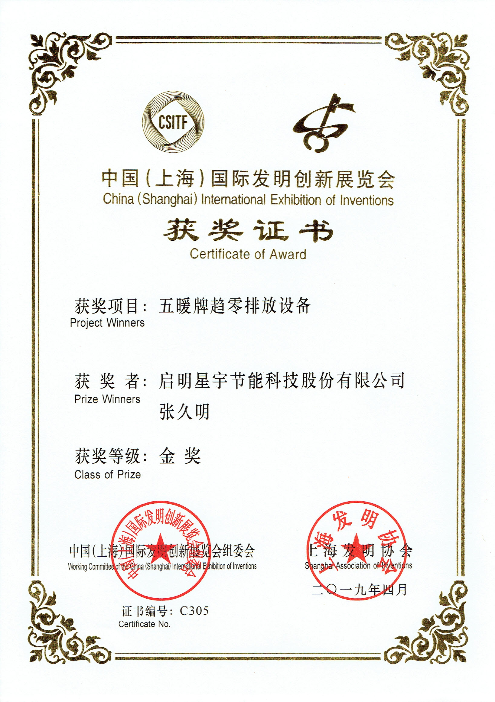 五暖趨零排放設備金獎(上海)