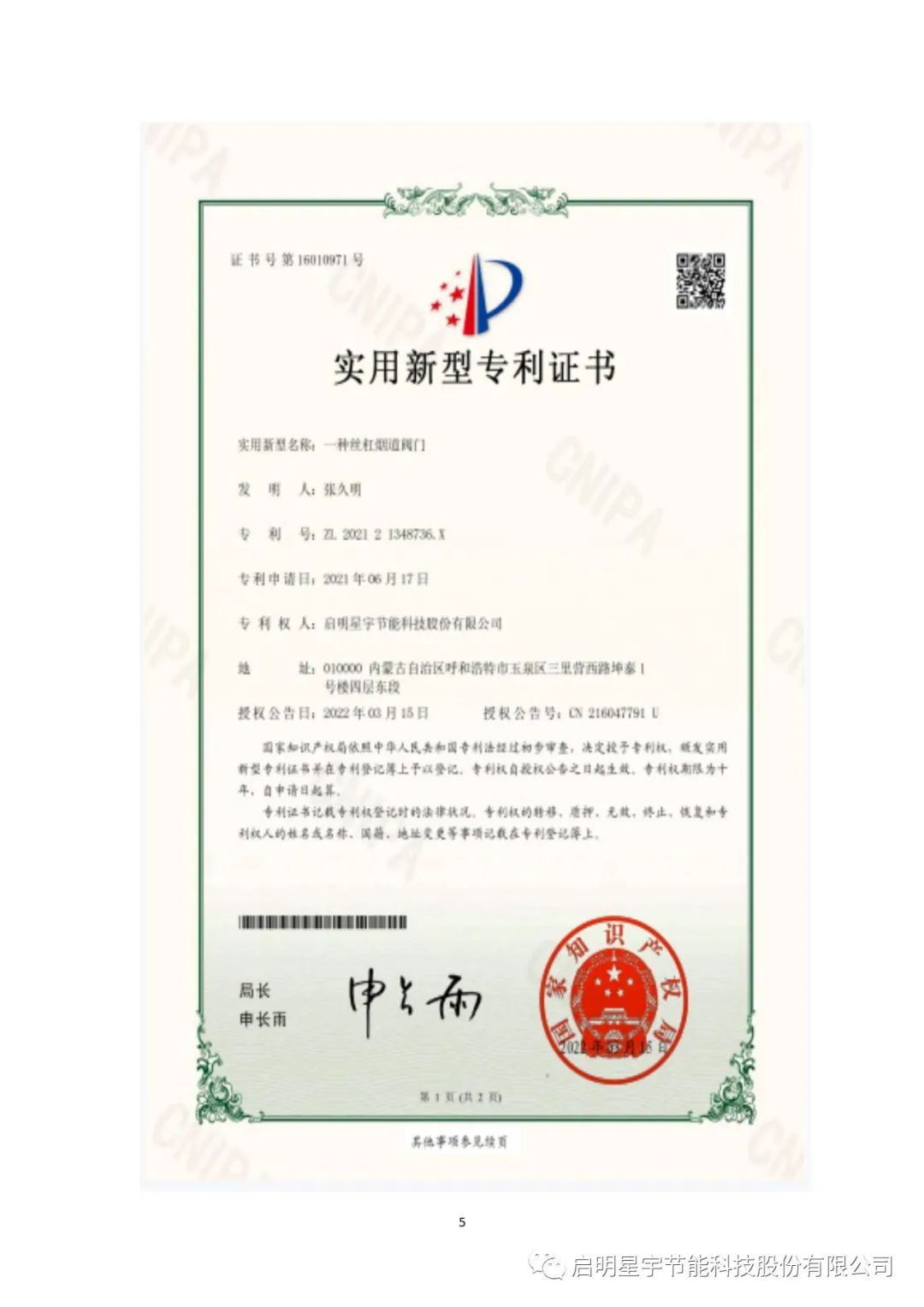 啟明星啟明星宇節能科技股份有限公司,2024年產品研發獲獎匯報